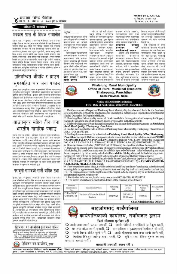 सार्वजनिक खरिद/बोलपत्र सूचना