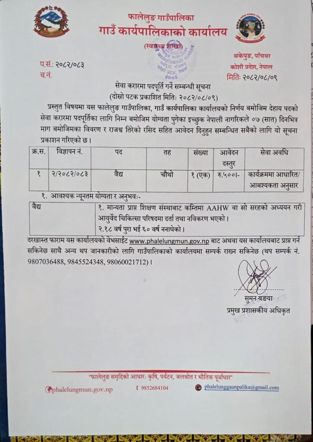 सेवा करारमा पदपूर्ति गर्ने सम्बन्धी सूचना ।